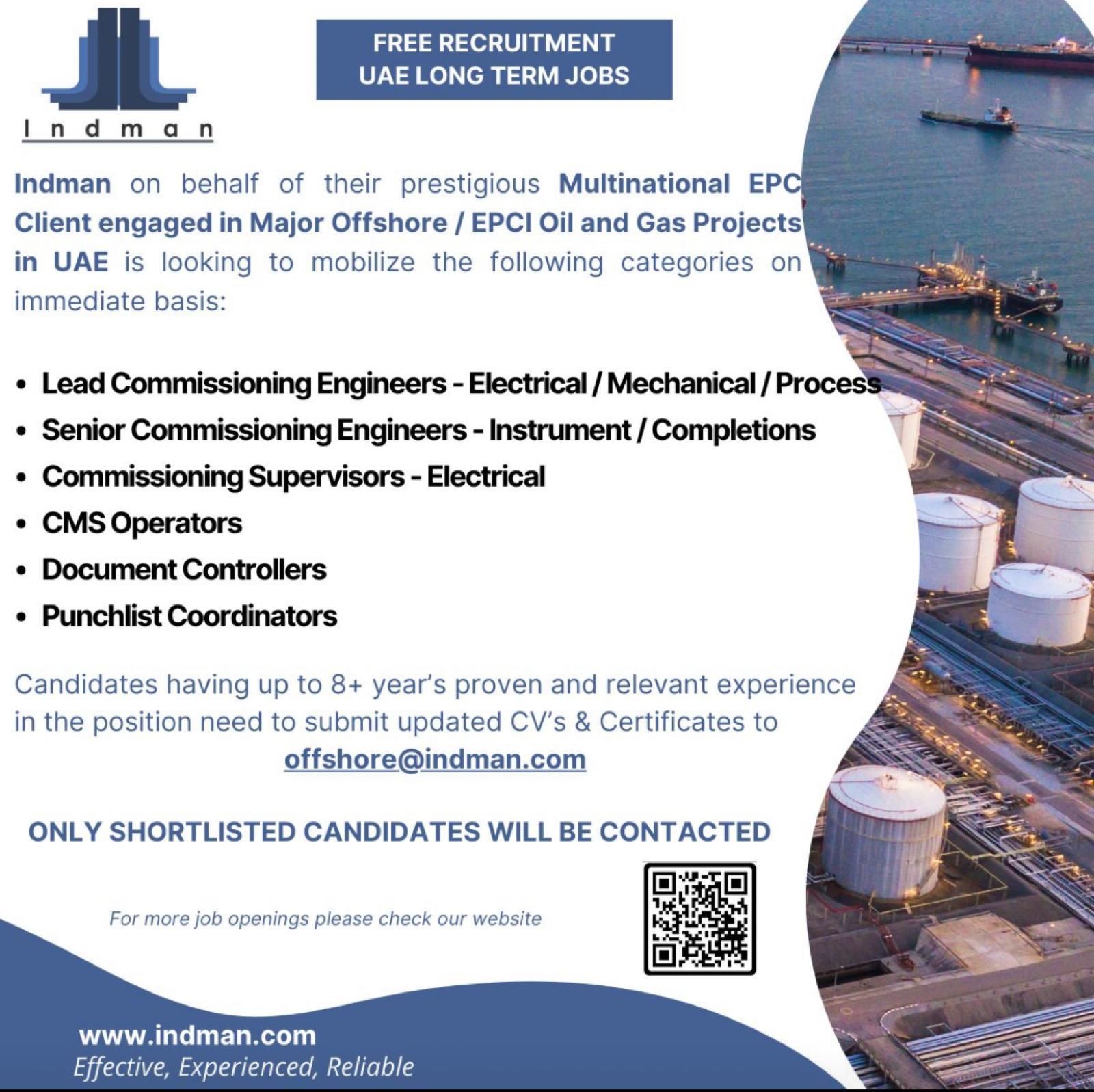 UAE – EPCI Oil & Gas Projects – Lead Engineers / CMS / Document Controllers and other job vacancies