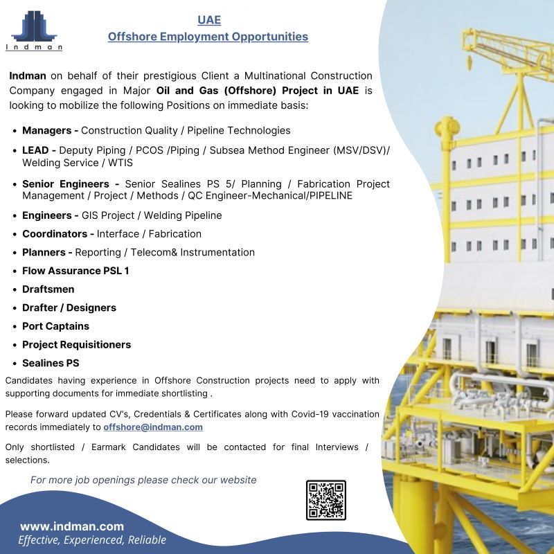 Apply Here: Post navigation India / UAE – Technical Job vacancies KSA – Electro-Mechanic Works Co. Having mnay Engineering & other job vacancies